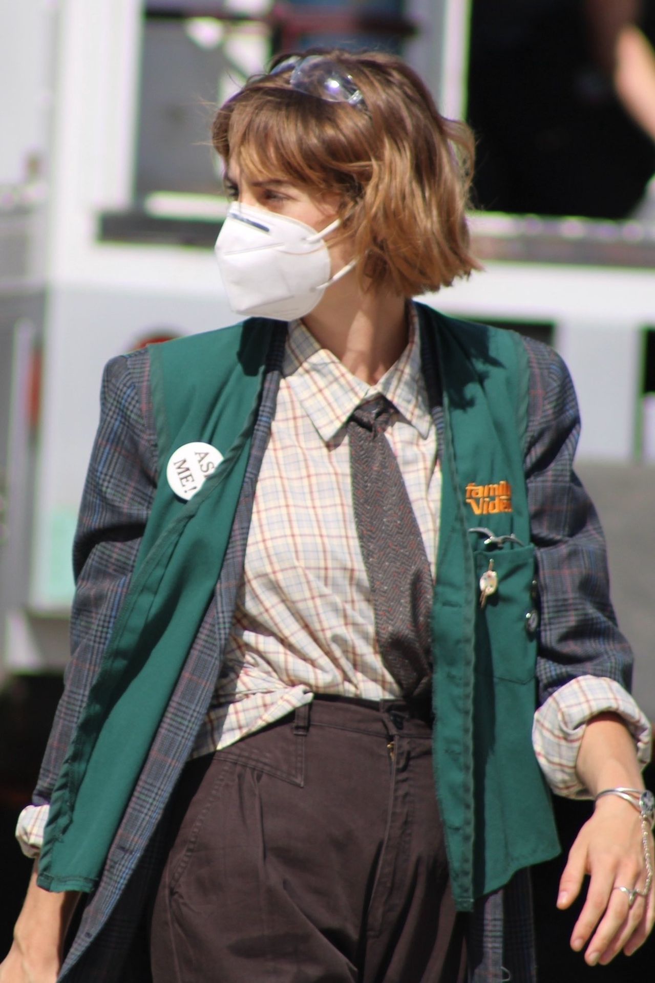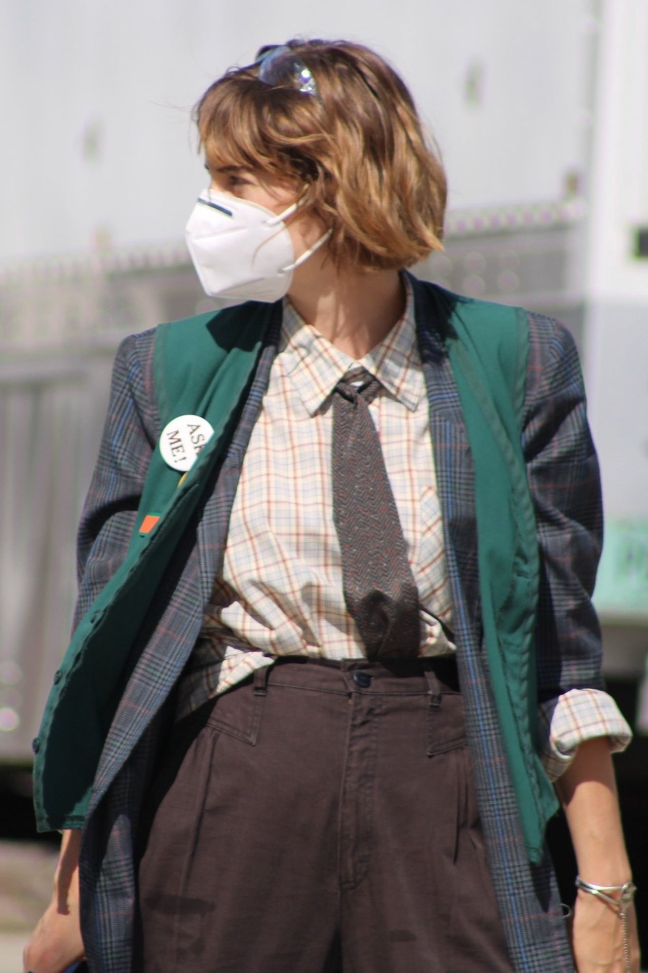 the blazer,, the TIE,,, the pins,,,,, her HAIR