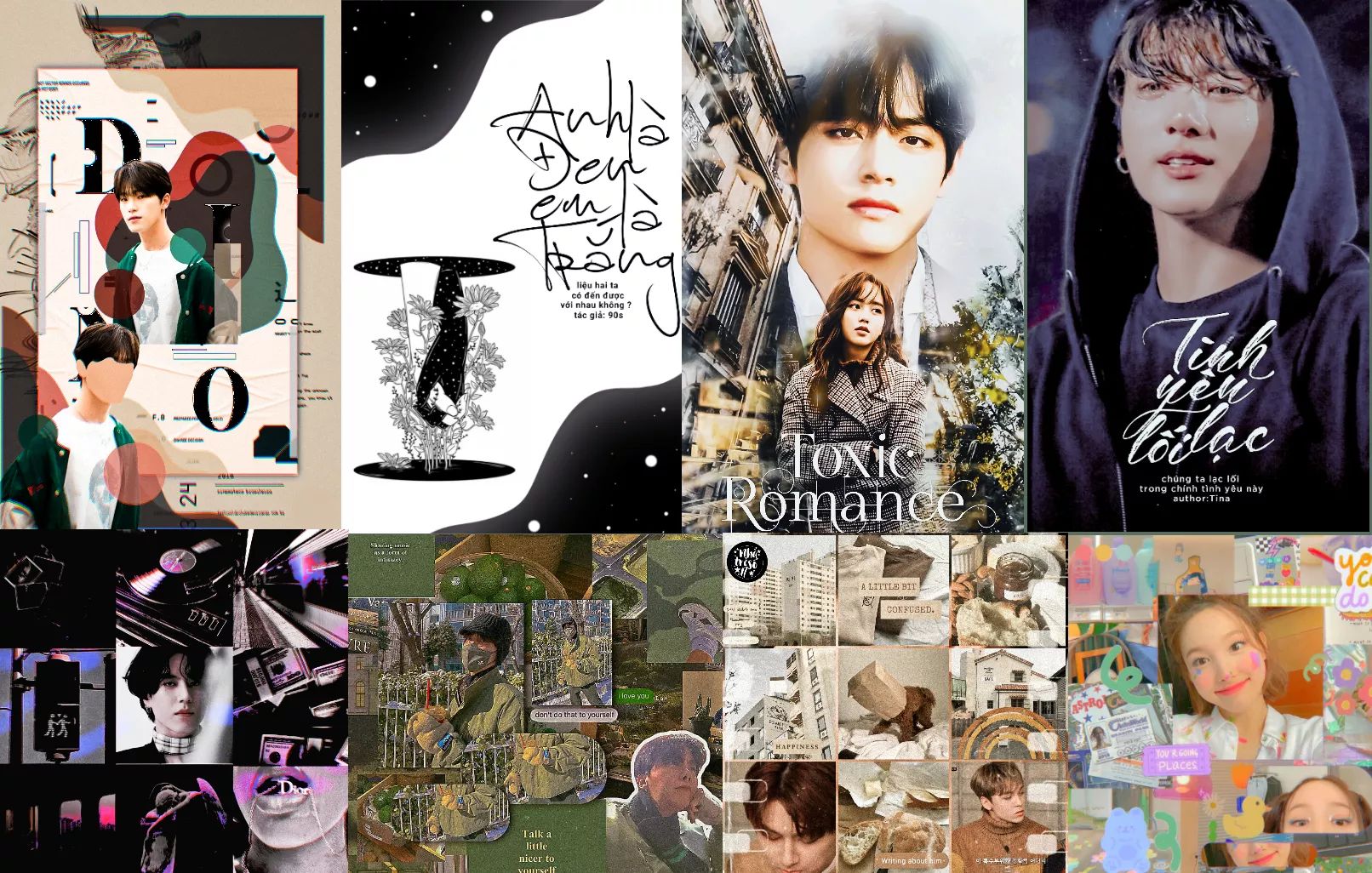 Chuyên: graphic moodboard, quote cover idol, bookcover.