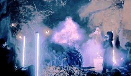 Then the gas changed—no longer a cloud, but something... something watching. It twisted in the air, curling into a ball of swirling lilac and blue, and then—
