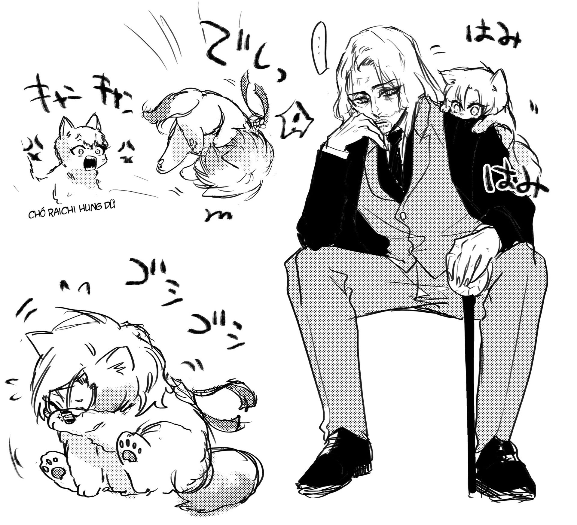 Kaimimi: meomeo( ông ngoại ơi con tó đó nó bắt nẹt con😿 ông ngoại xử nó cho con đi😾)