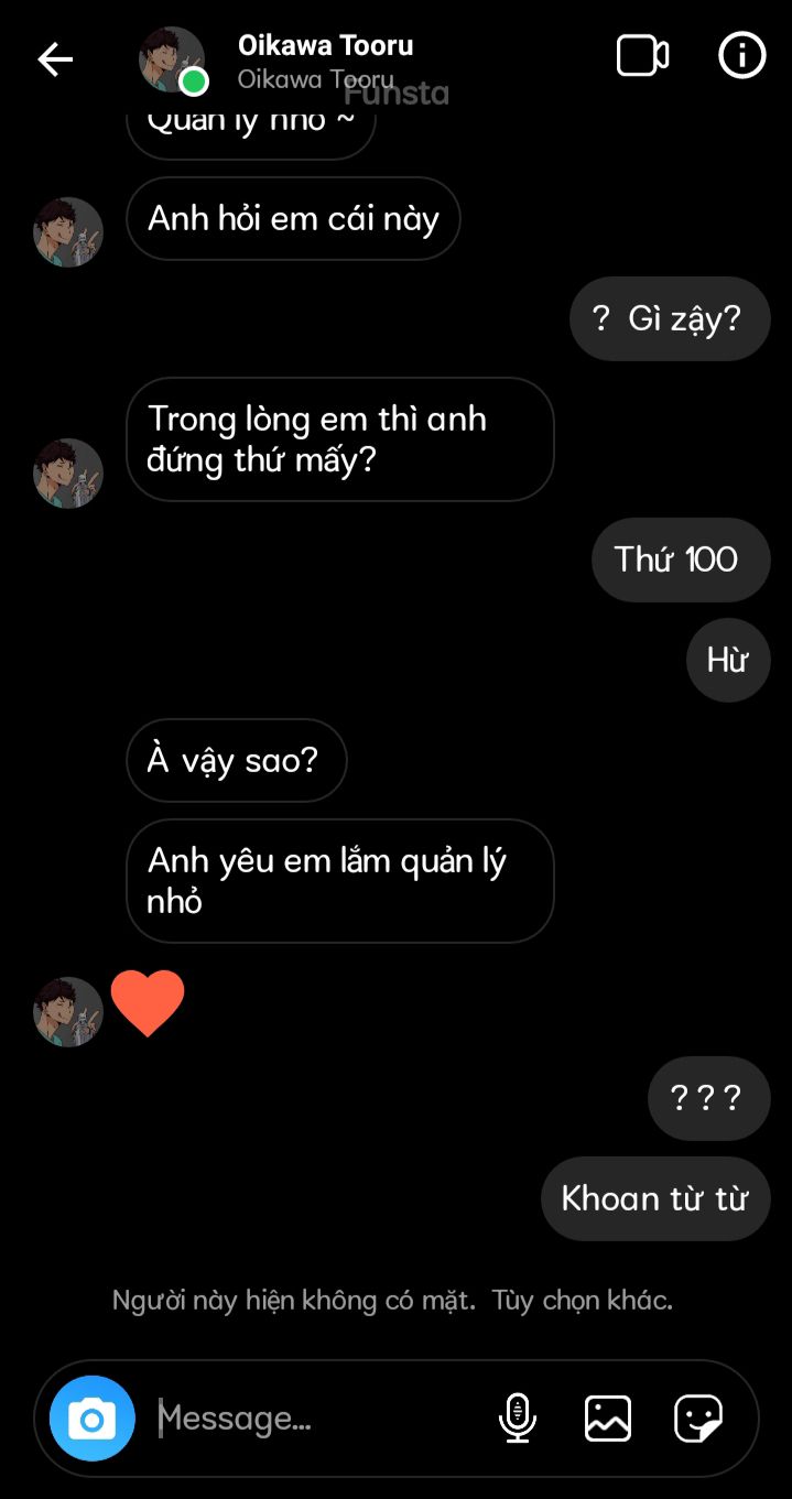 Bạn cười ngất nhìn màn hình điện thoại. Bạn có thể đoán được cái mặt của Oikawa khi bị bạn block luôn đó!