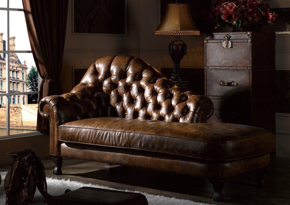 Ở giữa phòng có một chiếc sofa kiểu ghế quý phi bằng da thật (*), có thể tựa vào thỏa thích, duỗi người thoải mái xem phim.