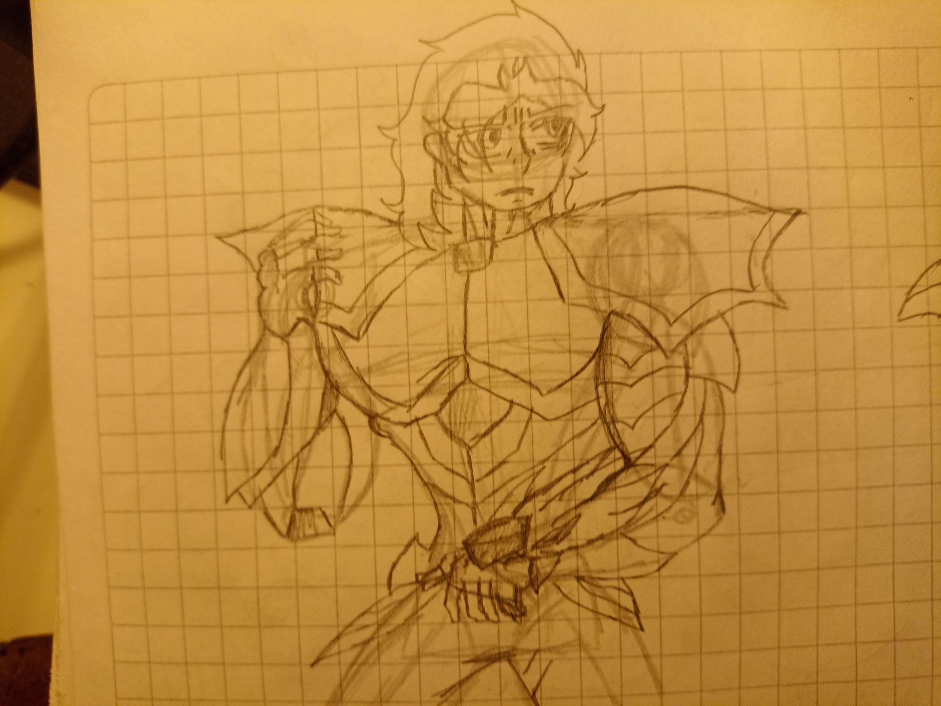 -¿Quien...? -Frenando su recorrido levanto la cabeza, mirando sobre un edificio a aquel desconocido, quien llevaba un traje blanco con ornamentación dorada, su traje era conformado de algo parecido al espandex y el visor de su casco lo hacia parecer alguna clase de emperador.