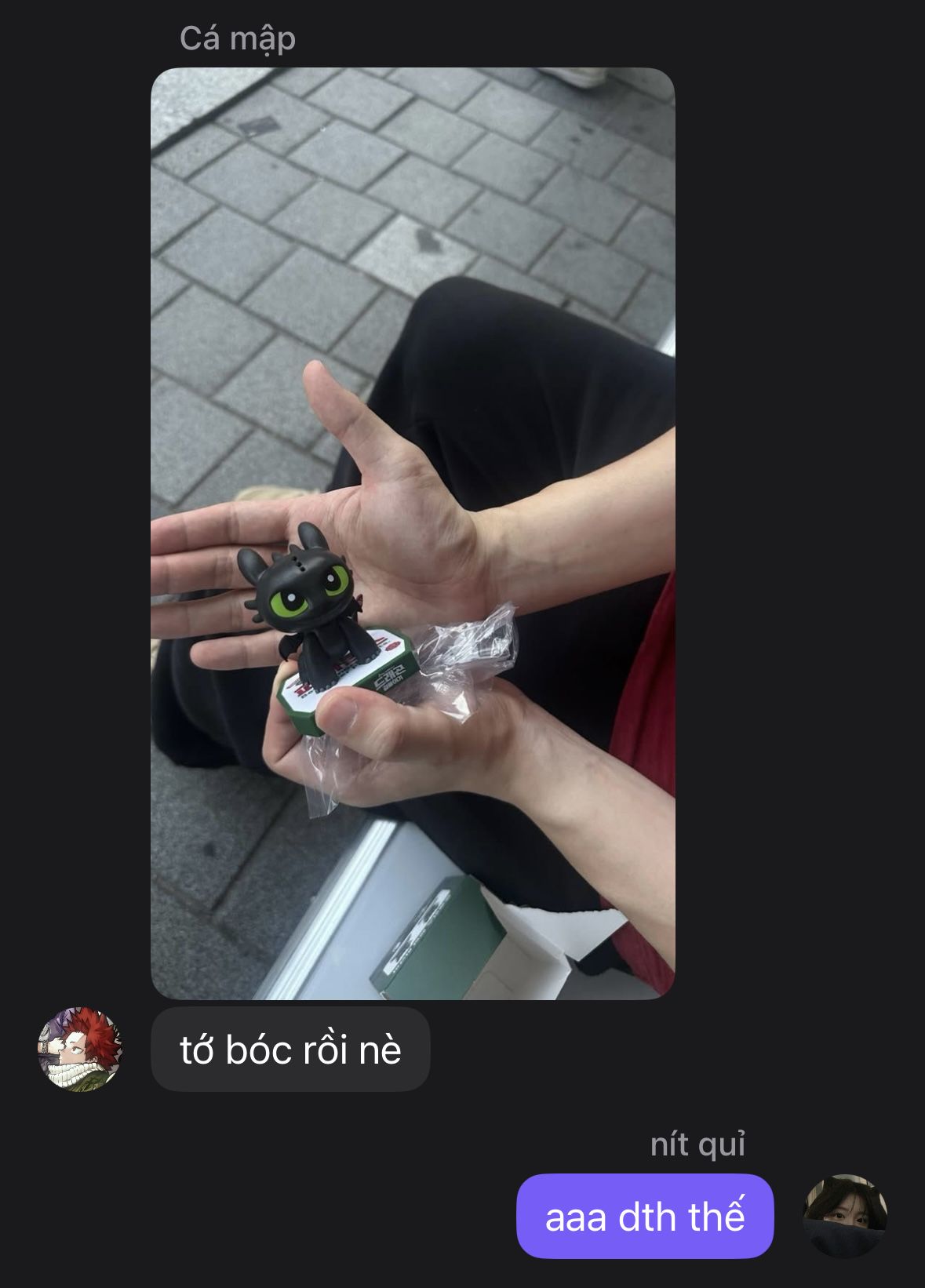 Cậu ta mở ra trong đó có 1 cặp móc khoá hồi sáng bạn có chụp cho hắn.
