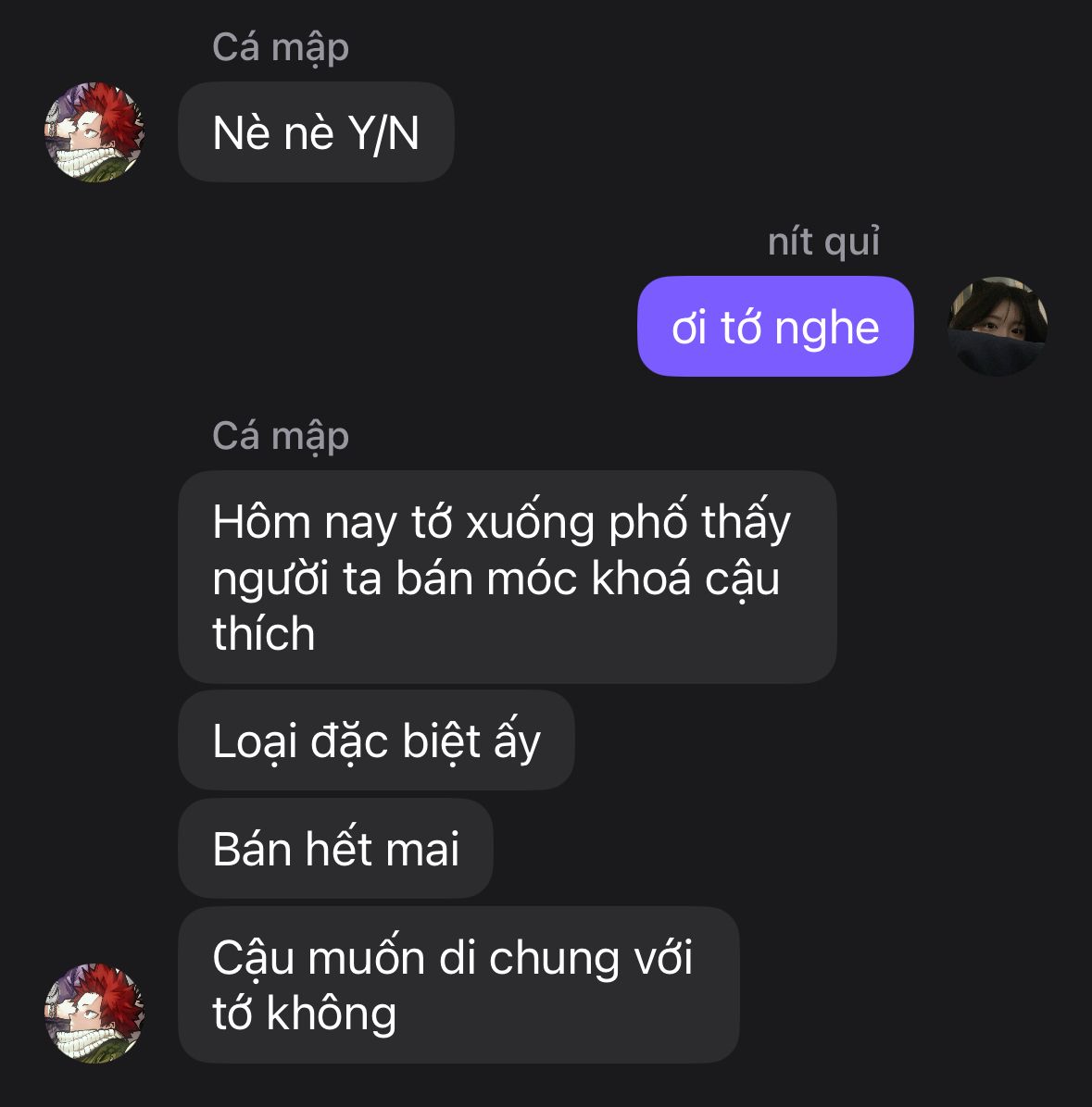 -Aaa cậu đợi tớ lâu không thế tớ chuẩn bị hơi lâu tớ xin lỗi._Y/N
