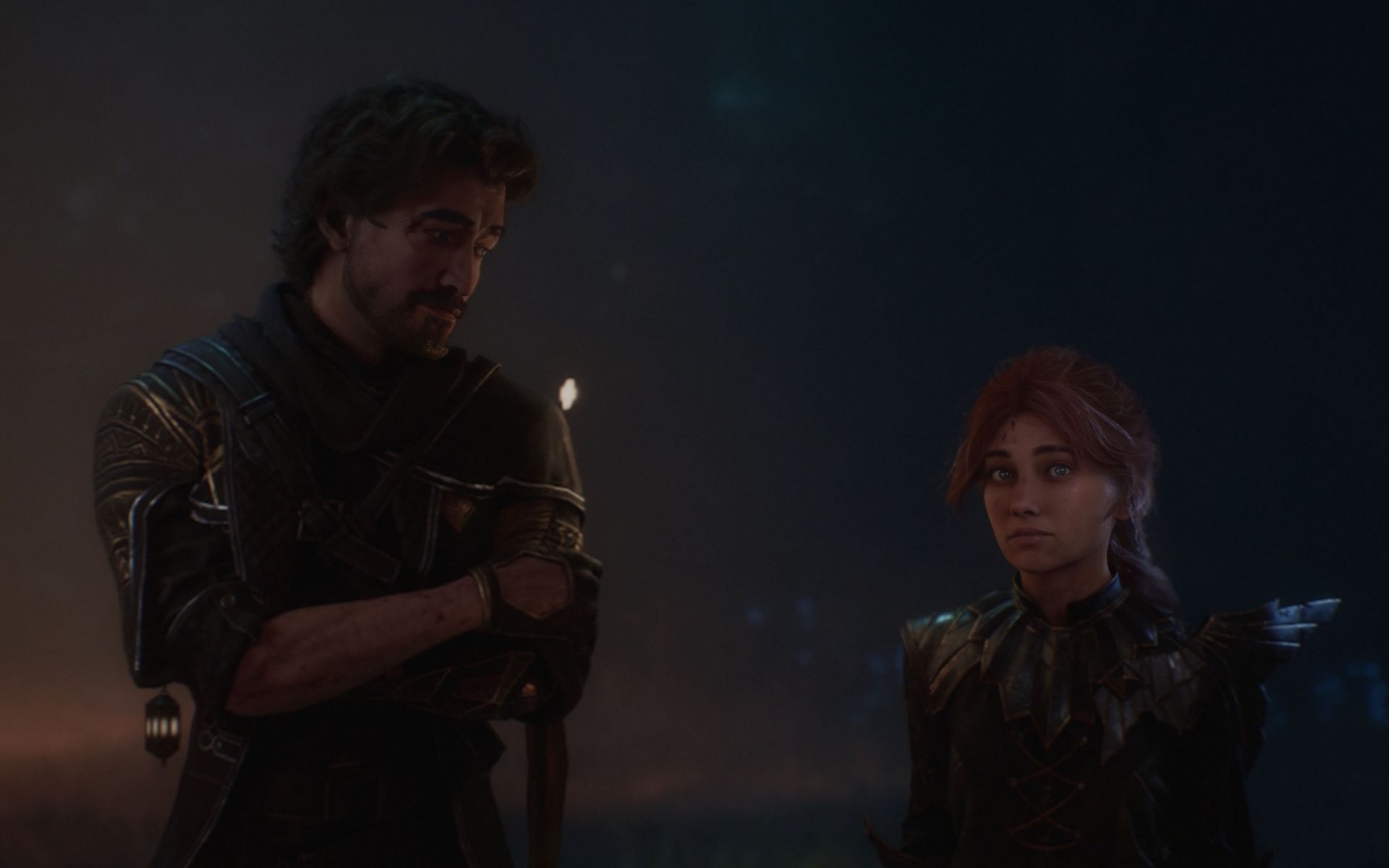 Another thing is the lighting on the two characters doesn't quite match. The male figure has almost studio-style lighting with muted shadows while the female figure has more of a warm flash lighting, which feels slightly sharper and more vibrant. These elements work individually, but together, they feel like a bit too much of a contrast. For tweaking it, a bit of color grading or blending could help make their tones feel more connected, that way they feel like they're in the same environment. The contrast itself isn't a bad idea since it can show the contrast between the characters, though what I mean is they feel like they're from different environments, so having their shadows and general lighting feel the same could be beneficial to keep readers immersed in the cover.