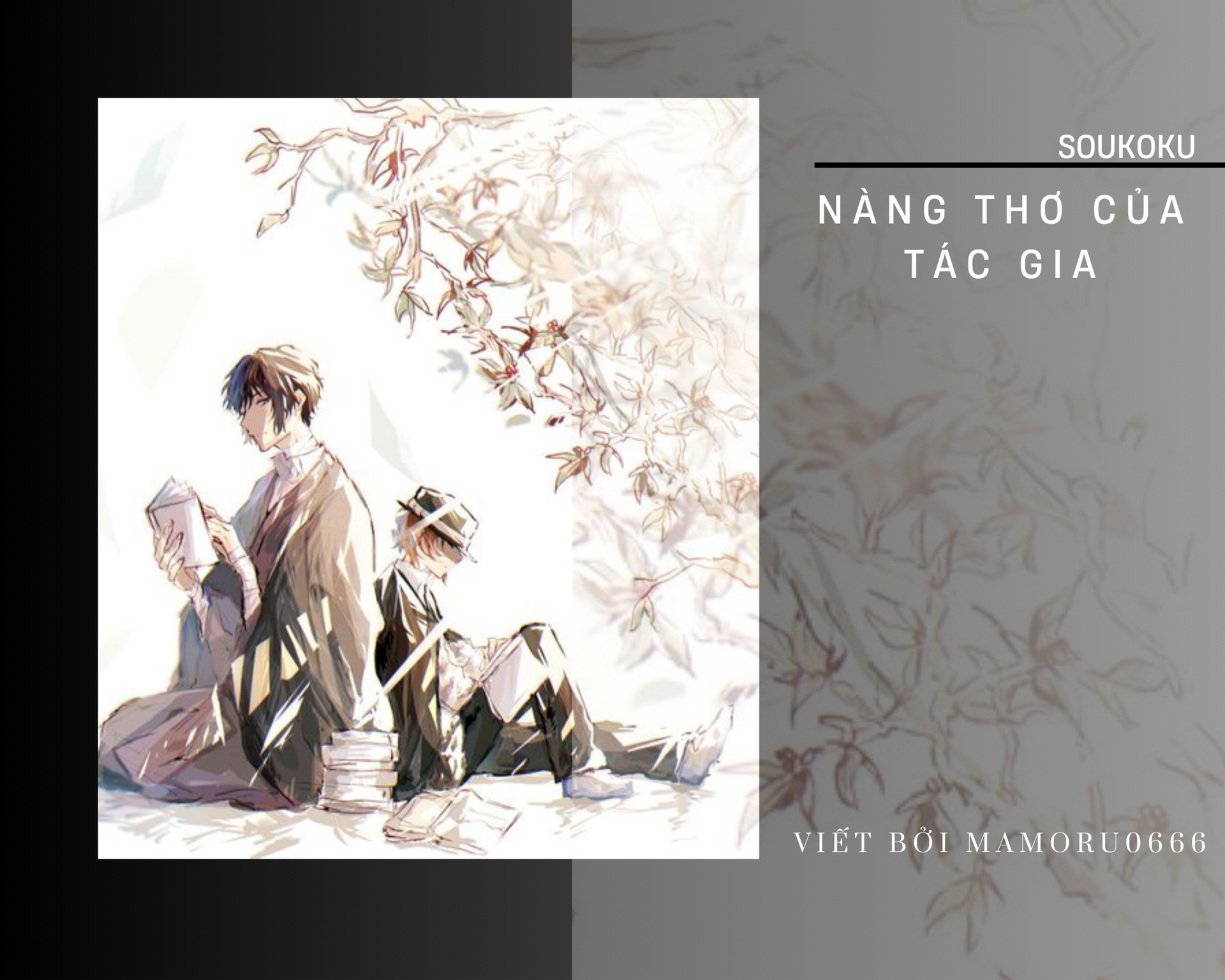 "Tôi đi nấu cháo cho cậu ăn đây, Chuuya ngủ một giấc trước cho qua cơn đau." Dazai tiến tới đặt tay lên đầu Chuuya và vỗ nhẹ cậu ấy vài lần, giống như vỗ đầu một con chó vậy, sau đó hắn cầm chiếc cốc lên rồi đi ra ngoài.
