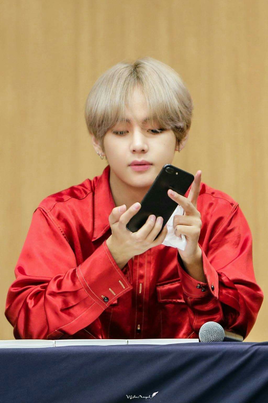 Teahyung để điện thoại nằm ngang , anh áp mặt lên bàn trang điểm.
