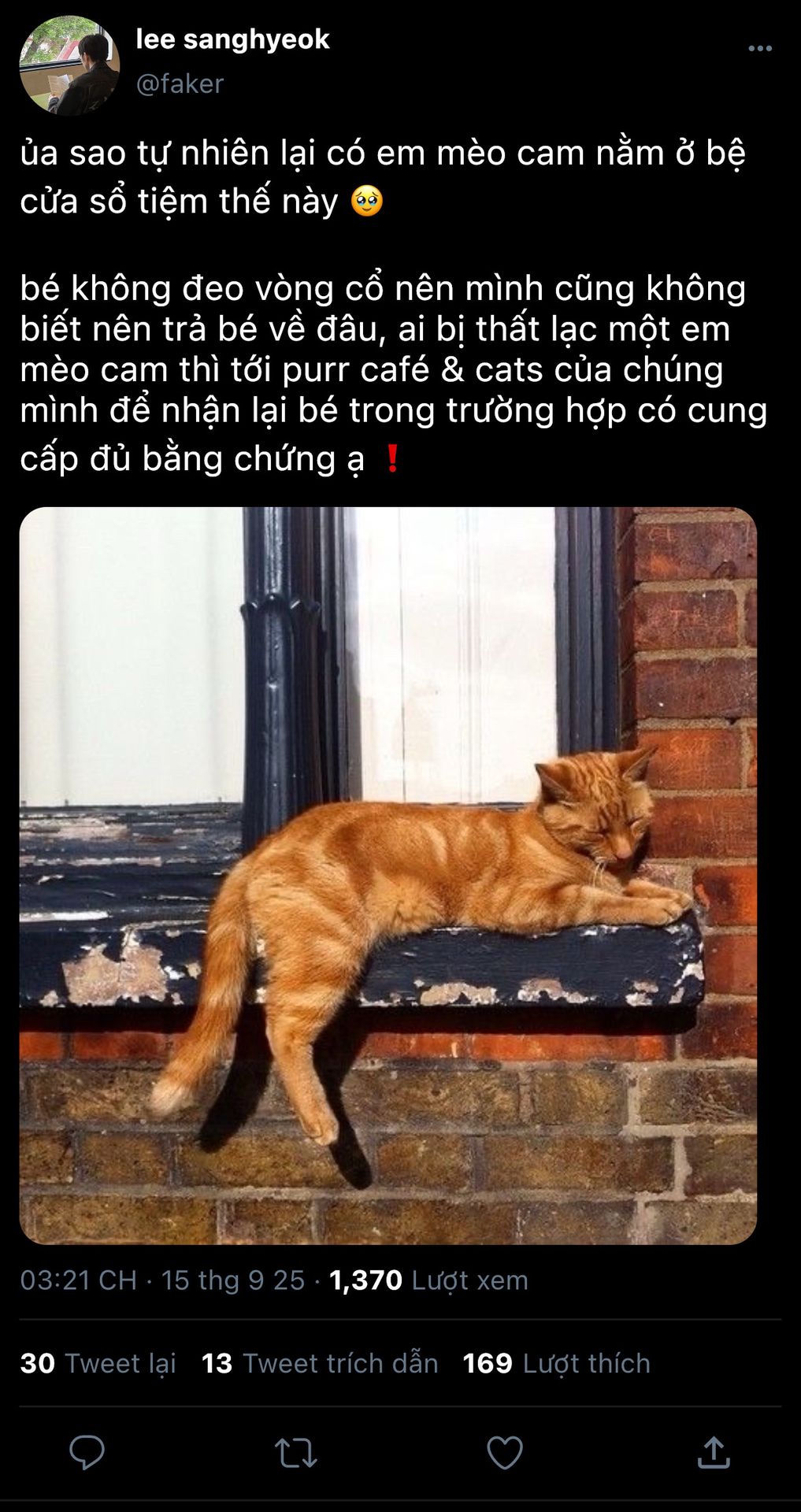 choker » có con mèo cam bên bệ cửa sổ tiệm café