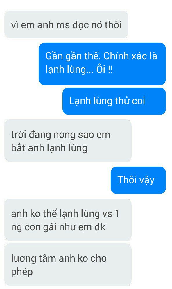 Tại sao tao nhắn tin với nó một thời gian lâu? Bởi vì nó sến súa buồn cười lắm các mày ạ. Tao thề là tao nhắn tin với nó mà tao cảm thấy mình ngu người đi nhiều lắm, nó sến kinh khủng khiếp ấy đm 😂