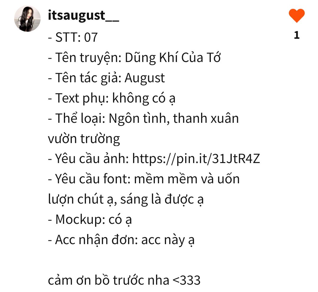 Khi đơn đã hoàn thành, nếu ưng ý thì cậu hãy cmt cho tớ biết và chủ động ib để nhận link HD nha, tránh cap màn hình bởi vì sẽ làm giảm chất lượng hình ảnh.