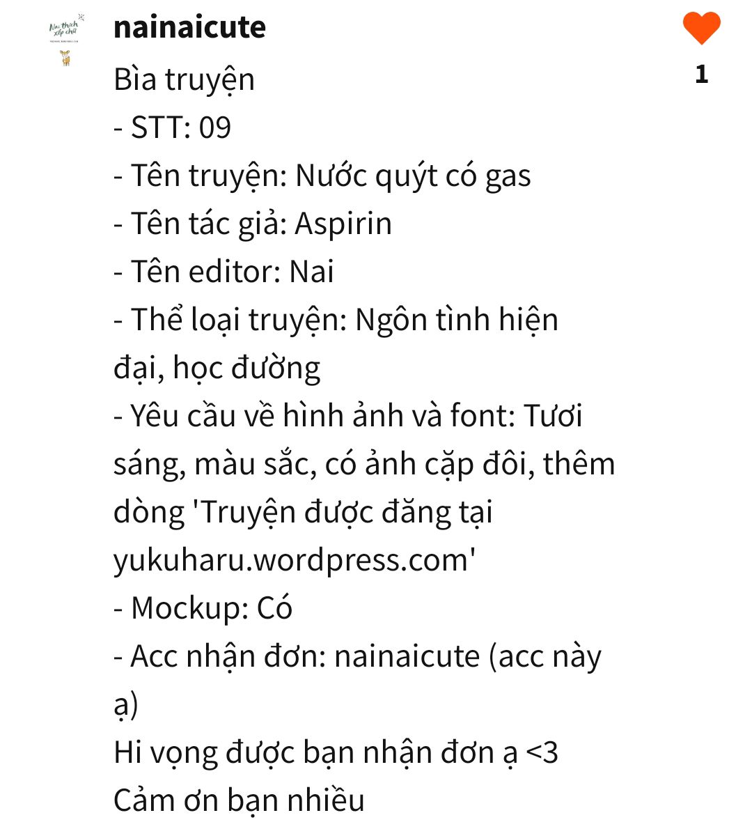 Khi nhận đơn, nếu ưng ý thì cậu hãy cmt cho tớ biết và chủ động ib để nhận link HD nha, tránh cap màn hình bởi vì sẽ làm giảm chất lượng hình ảnh.