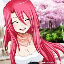 Từ xa,có 1 cô gái tóc vàng,búi tóc gọn gàng, mặc chiếc váy màu hồng căng phồng xõa dài xuống đất áo ngang lưng,tay cầm quạt đỏ, cô có đôi mắt màu chocolate,môi mịn màng vẻ đẹp thanh tao đang ngồi uống tách trà và ăn bánh kem trong quán,natsu tò mò lại hỏi: