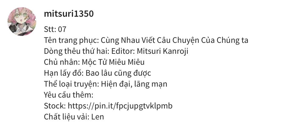 - Trang phục được đặt chắc chắn phải được sử dụng ít nhất 1 tuần.