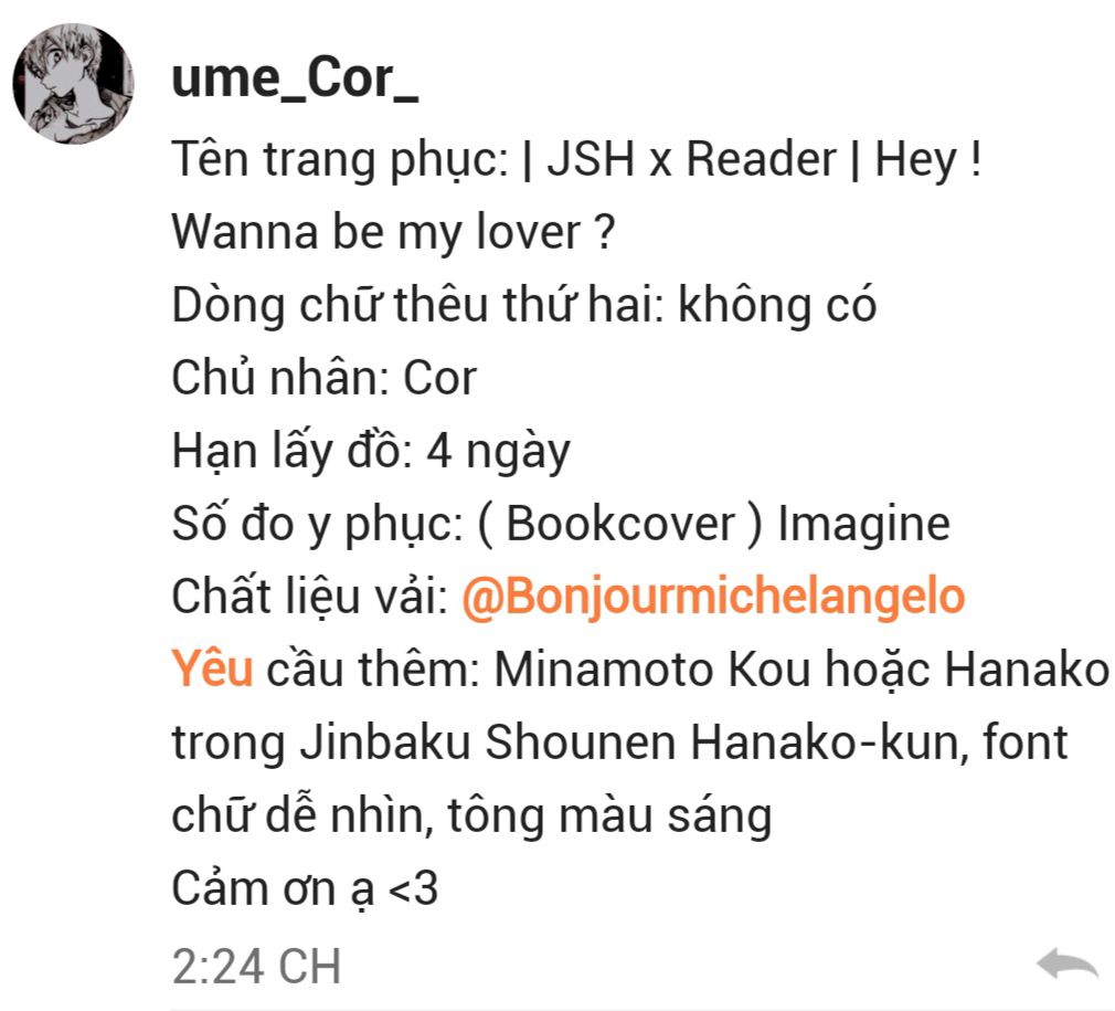 + muốn sửa: Cmt "Sửa." và đưa ra yêu cầu mà bọn tớ còn sai sót cũng như chưa hợp ý cậu.