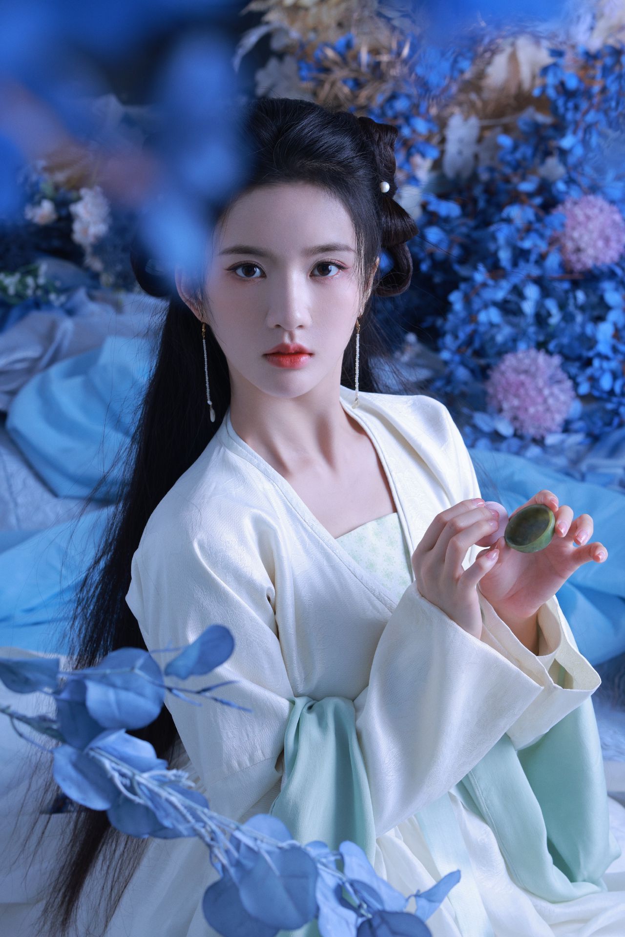 Chưa kịp nghĩ ra kiểu tóc, Khương Lê đã nhìn vào gương đồng, tự tay búi gọn mái tóc dài đen, đôi tay linh hoạt một chút đã búi xong một búi tóc uyển chuyển.