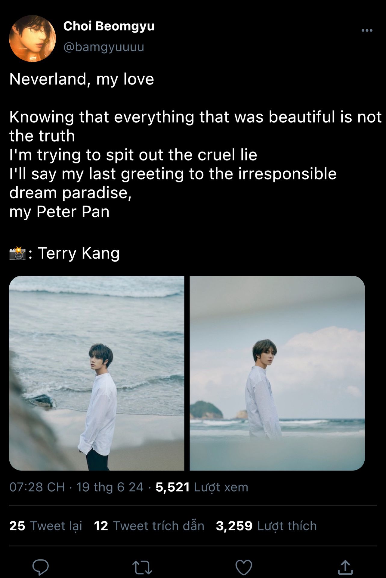 Tôi sẽ gửi lời chào cuối cùng tới thiên đường trong giấc mơ vô trách nhiệm, Peter Pan của tôi"