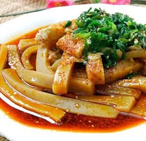 (*)Nhưỡng bì (酿皮 ): là một loại mỹ thực truyền thống đặc sắc lưu hành ở Tây Bắc Trung Quốc, dùng tinh bột mì hấp lên trộn đều với tương ớt đặc chế và các loại gia vị khác, mềm mại trơn mịn, chua cay ngon miệng rất được người dân ở Thanh Hải, Cam Túc, Ninh Hạ, Thiểm Tây yêu thích.