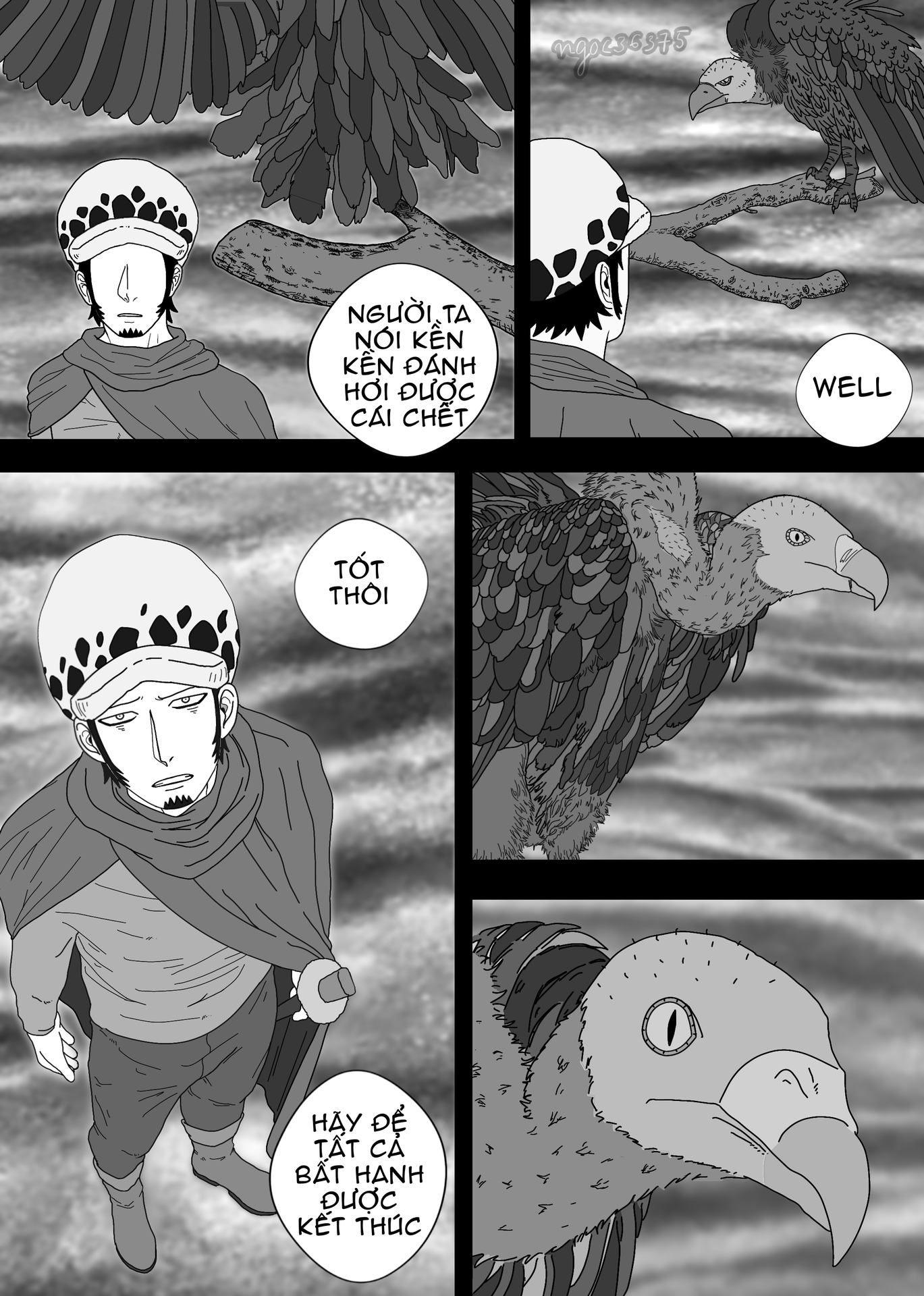 Ý Law là kền kền đánh hơi được cái chết từ Law ấy, nhưng Law không buồn không vui, Law chỉ muốn kế hoạch cảm tử thành công.