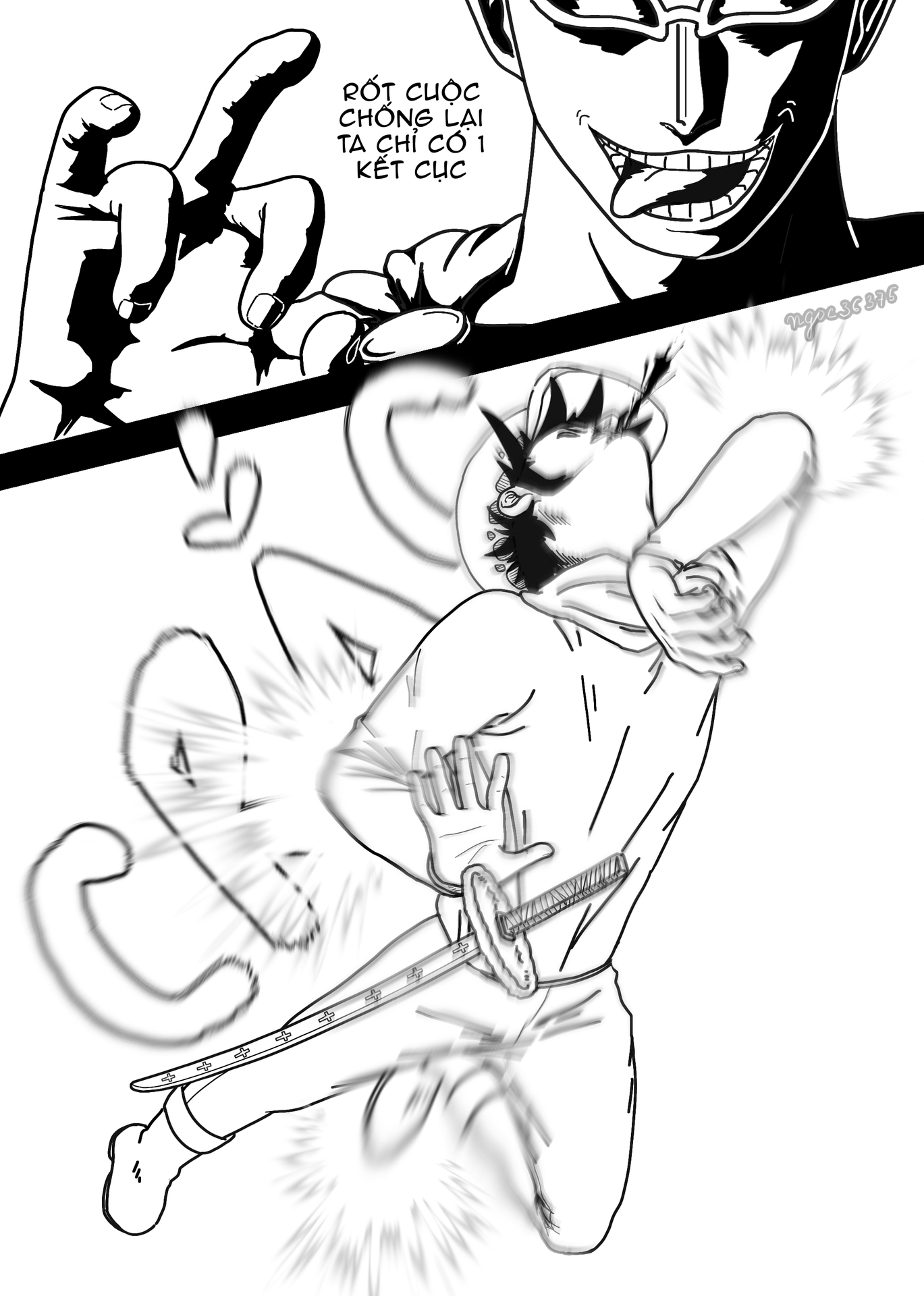Nhưng con mẽo kền x2 lại phản dame bằng cách lấy đi hy vọng đó của Law, tui muốn phần mày trông depressing 1 tí mà ko đc, con kền tui vẽ đó trông quá ngu😭