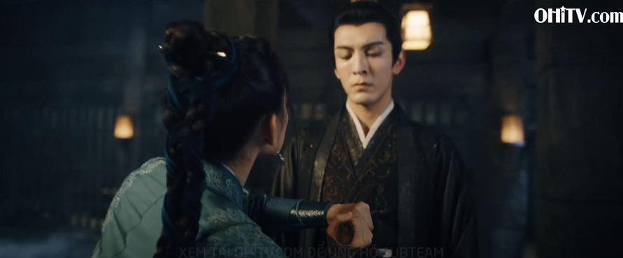 Triệu Viễn Chu chỉ có thể nắm chặt lưỡi kiếm Vân Quang để ngăn cản hành động của Trác Dực Thần. Máu chảy ra từ lòng bàn tay y.