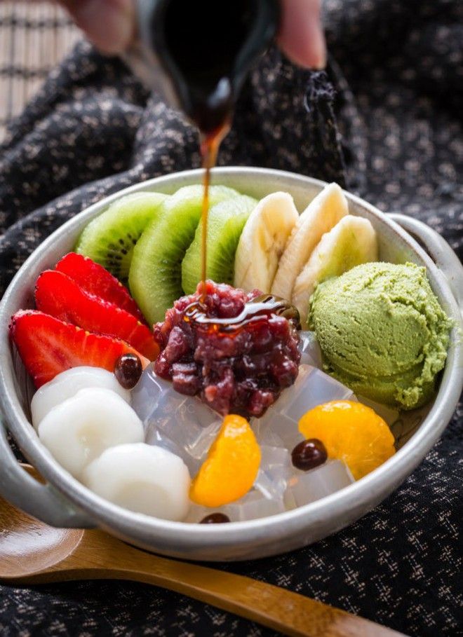 (*) Anmitsu: Là món tráng miệng nổi tiếng của Nhật Bản, với những khối thạch nhỏ được làm từ tảo biển, ăn cùng với các loại trái cây, kem, đá bào, các loại quả từ phương Tây.