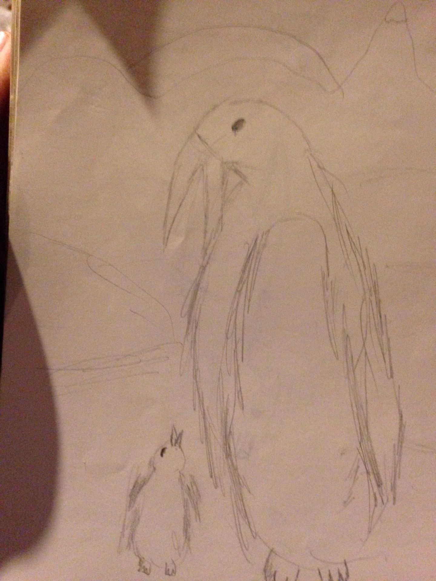 Farm animals partly drawn by sister