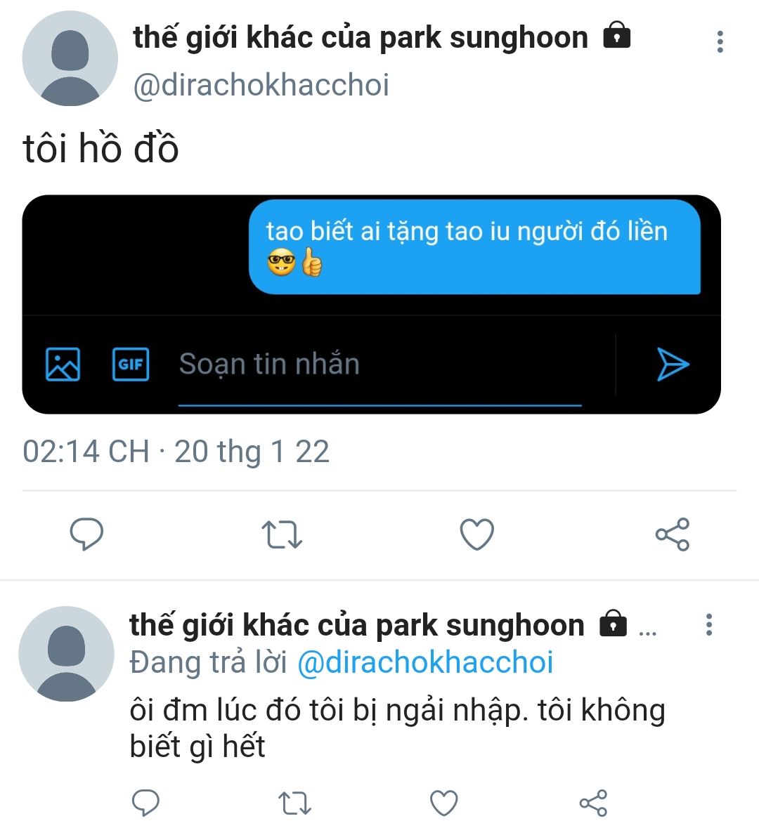 quay trở lại với tin nhắn của jakehoon