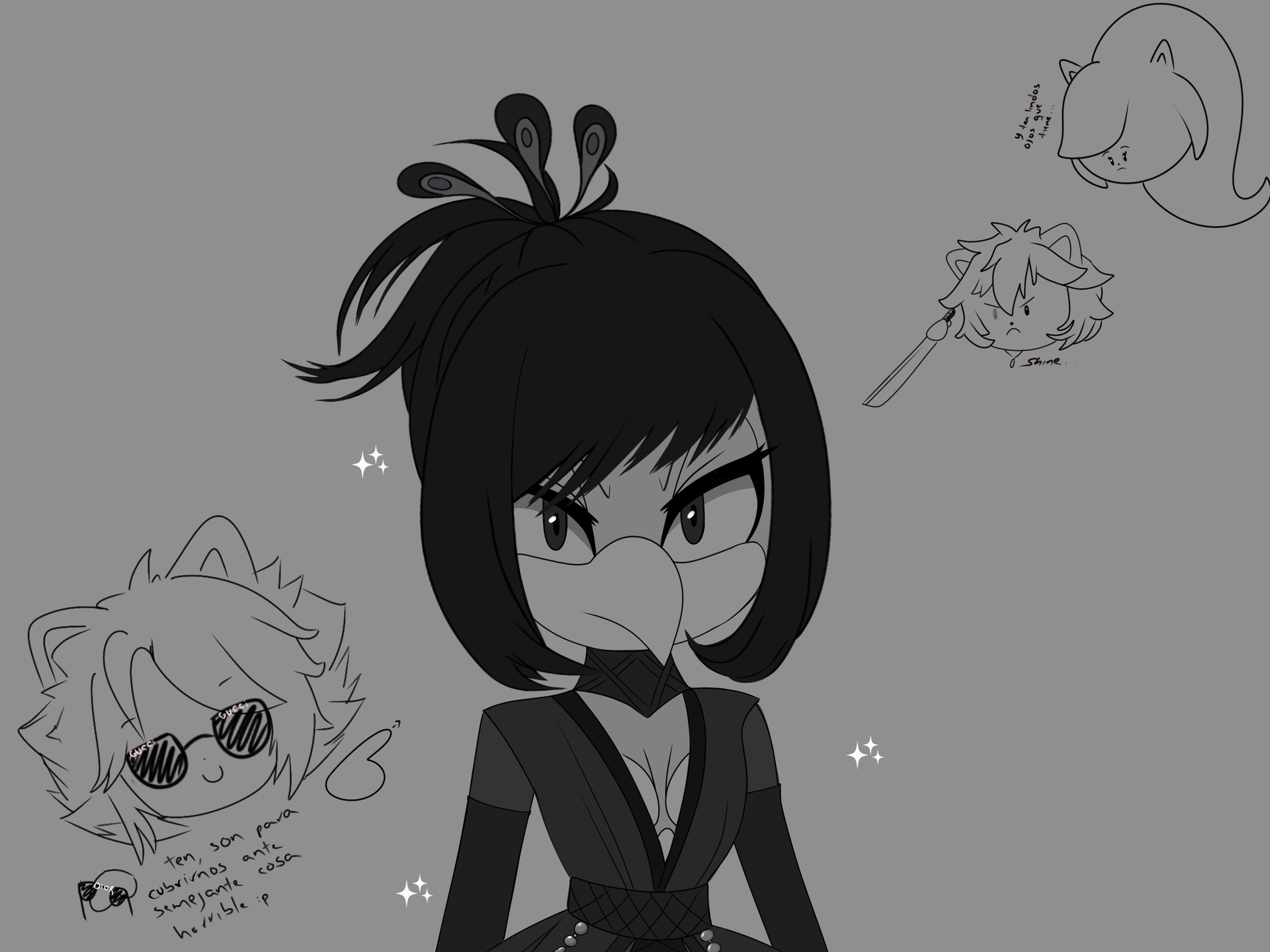 Les muestro el boceto porque pos, debo detallar más cosas :v y además..sus ojos no están listos. Así que podemos decir que aquí pueden verla con su visión si estuviese buena (':