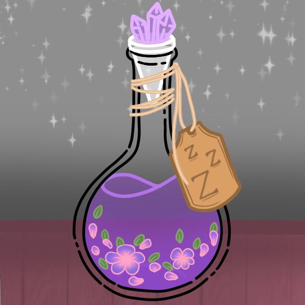 Malinda went into her dorm room and dropped her duffle bag on the bed. She then opened the window, and takes a deep breath of the fresh night air. She then went to her duffle bag and pulled a strange potion bottle with a purple liquid with lavender flowers inside, from the bag.