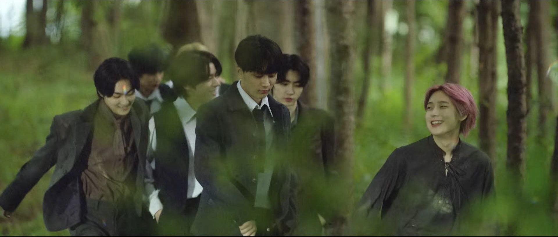 Heeseung đứng ở đó, tay ôm bó hoa lưu ly tím, mái tóc đã đổi sang màu bạc cùng với đôi mắt nhìn sáu người họ trống rỗng không chút cảm xúc.