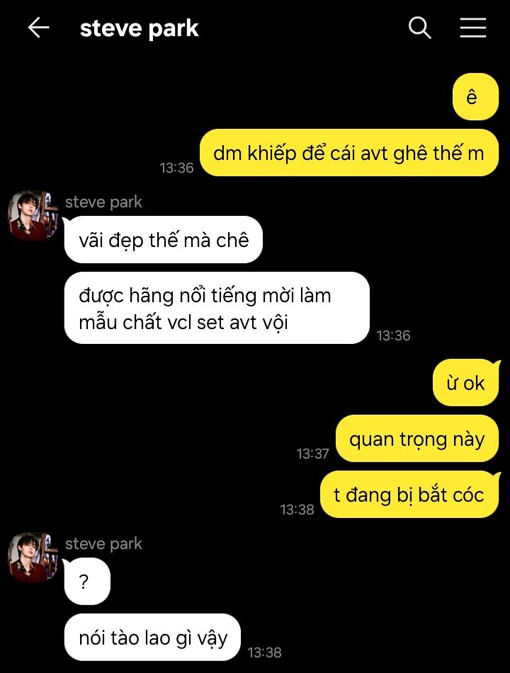 - bố mày có làm bot như mày không? thêm cái cờ đỏ gắn vào mày nữa, ôi thề, mày là đứa điên nhất tao chơi cùng đấy.