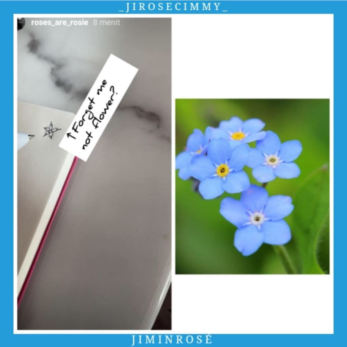 Đây là trong 1 story của Rosé,cô ấy đã đăng tải 1 hình vẽ 1 bông hoa cùng với caption " Forget me not flower? "