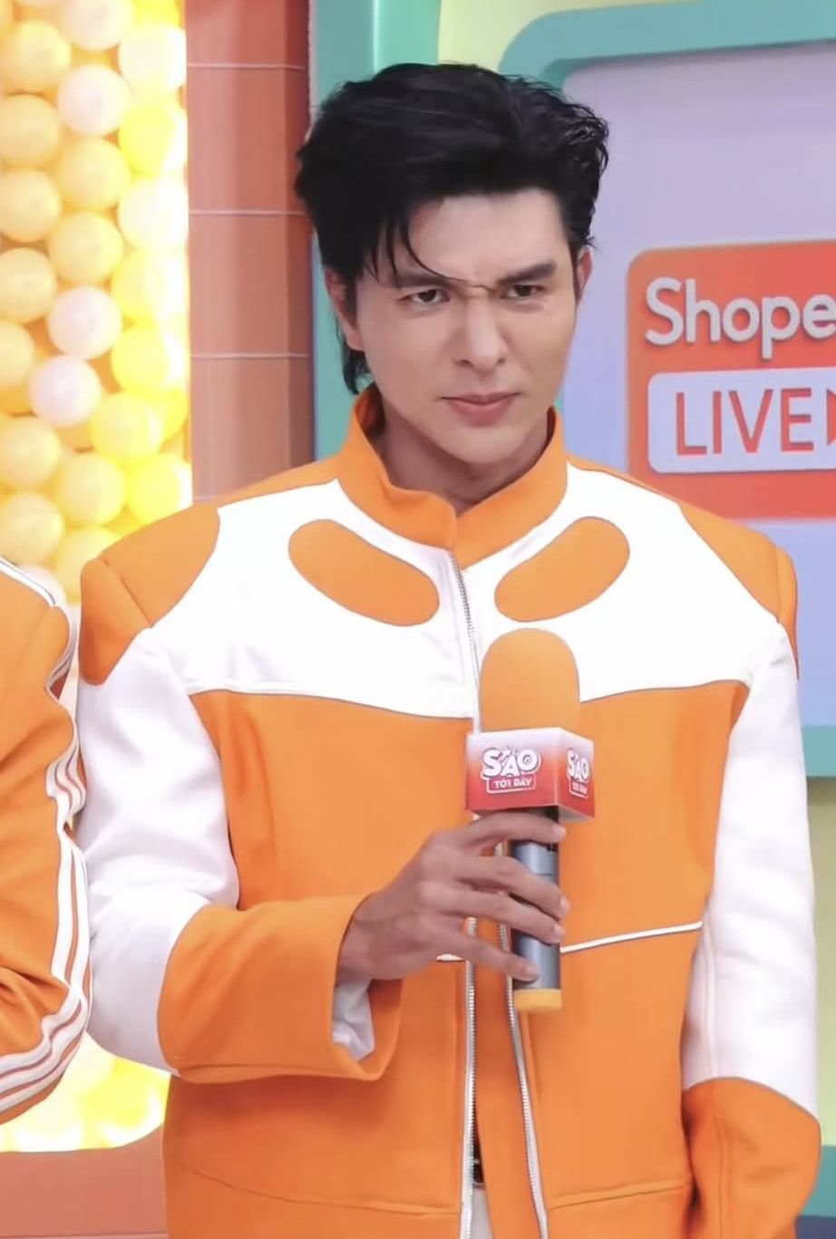 Tai hơi nong nóng, Huy cười gượng nhưng vẫn cầm mic lên.