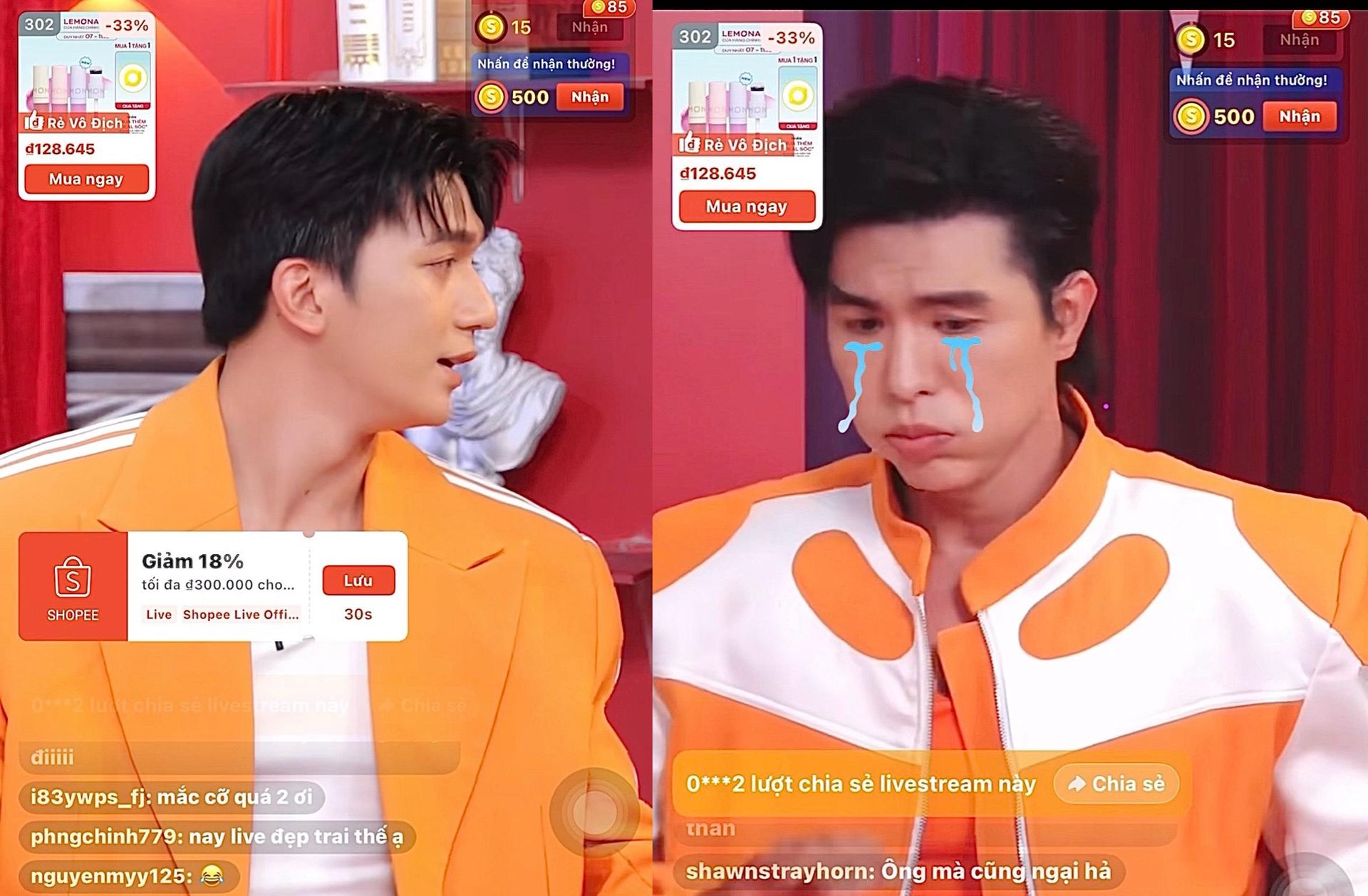 Huy cạn lời, ảnh đơ cái mặt ra nhìn sang Hoàng cầu cứu, nhưng anh ơi là anh, anh quá ngây thơ rồi, anh không thấy ai là người đề xuất diễn lại cái vai này hả !!??