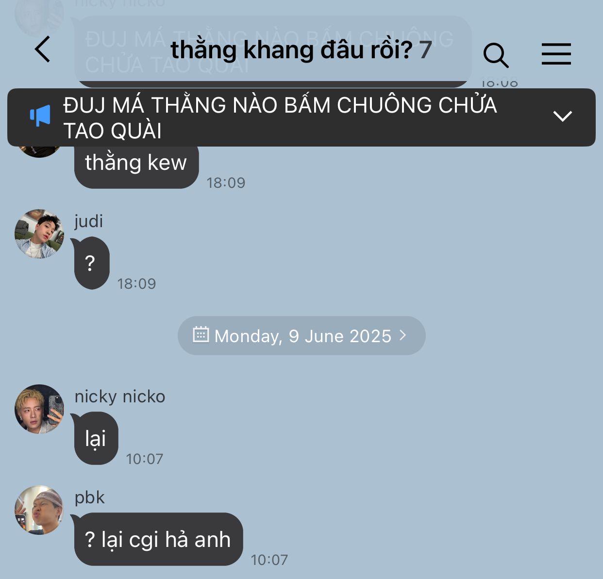 nicky nicko -> thằng khang đâu rồi?