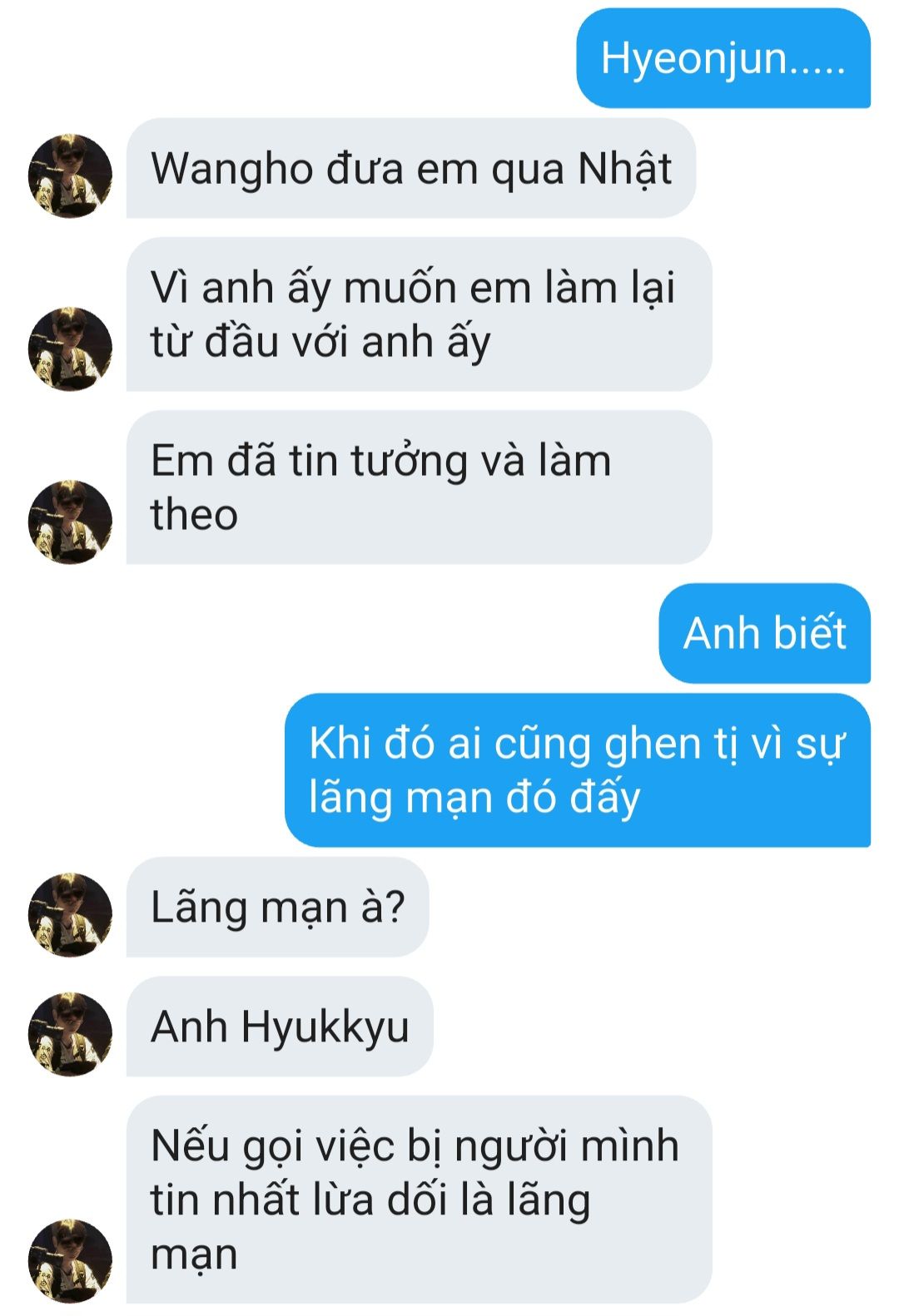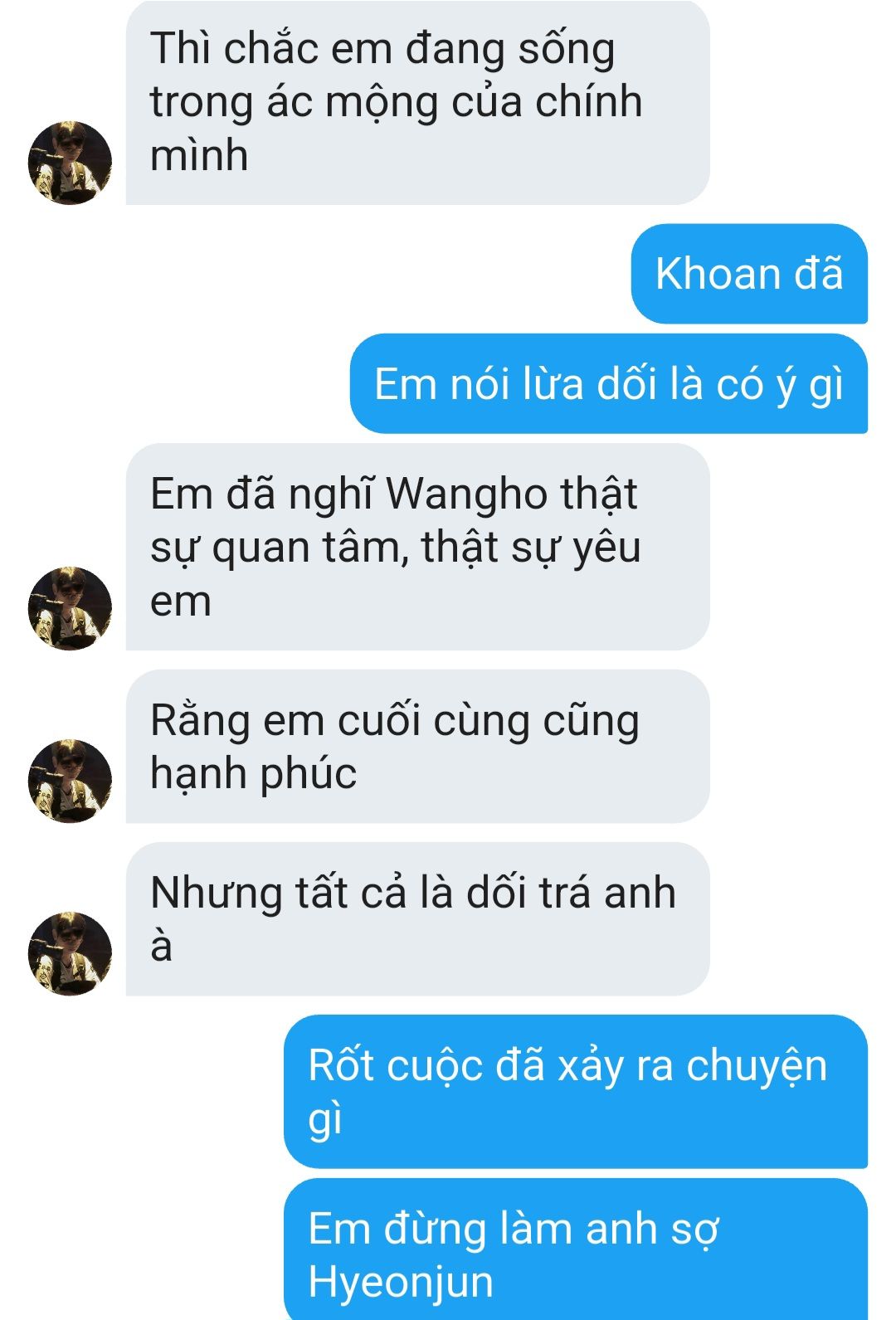 Choi Hyeonjun rõ ràng yêu Han Wangho nhưng Han Wangho đã nhẫn tâm dẫm đạp lên thứ tình yêu như hơi thở đó của cậu và cũng tàn nhẫn cầm dao cắt đi từng tấc da thịt, róc tận xương để moi đi trái tim đang đập nhịp vì anh.