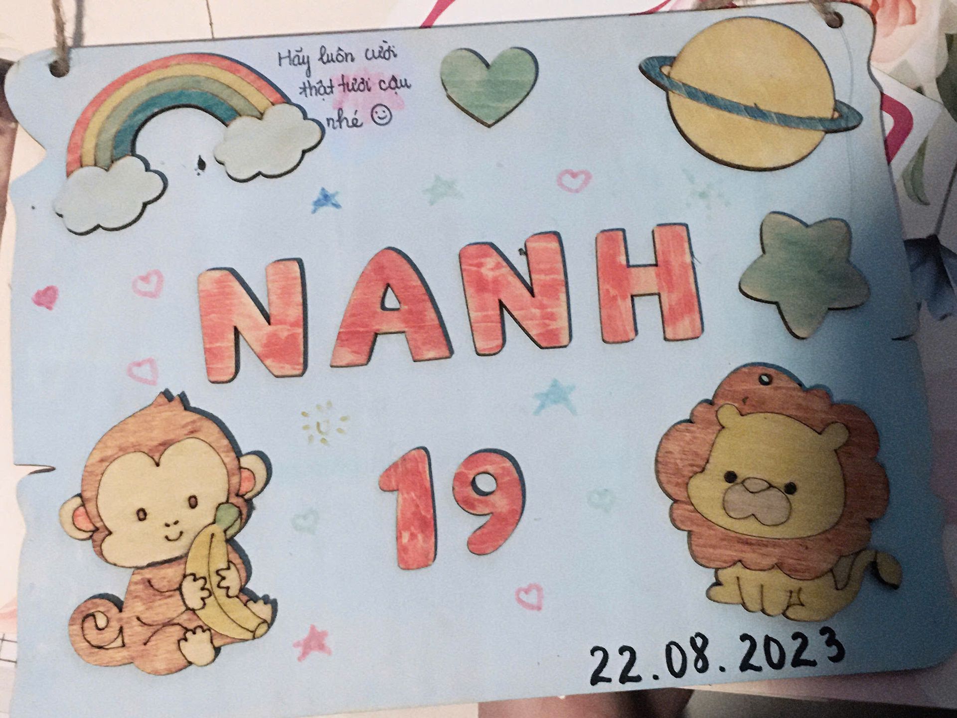 và rồi, tôi đã làm tấm bảng này như là một mảnh ký ức nhỏ về tuổi mười chín của tôi.
