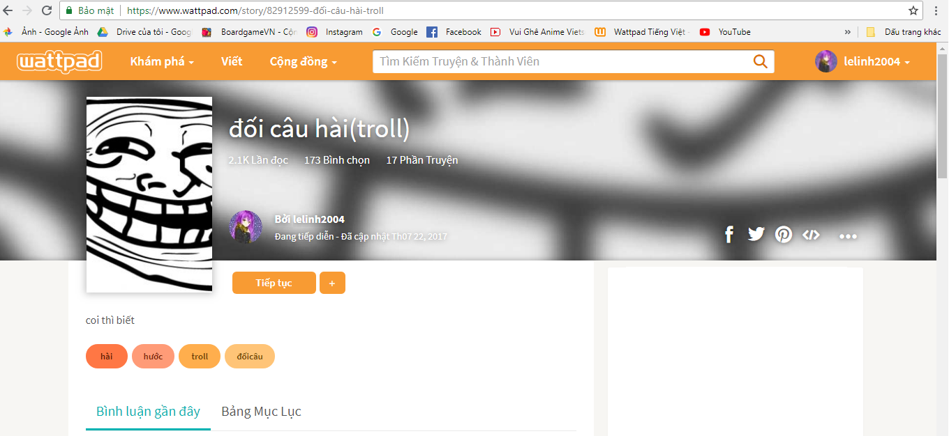 Tui chỉ mới làm Wattpad được 3 năm thôi. Tất cả truyện tui viết đều lot top Tags nhưng nó lại không có tiếng vang gì cả :v