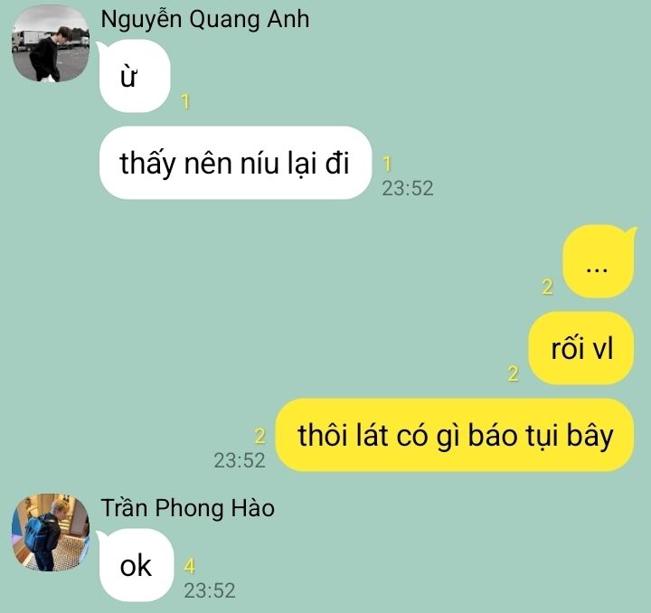 Thành An với mớ đầu óc rối như tơ vò, thấy bản thân cũng tồi khi không nghe người ta giải thích nhưng cậu sợ, sợ Quang Hùng nói những lời không giống như cậu tưởng tượng. Sợ Quang Hùng lại làm cậu đau lòng như cách anh từng làm vào mấy năm trước.