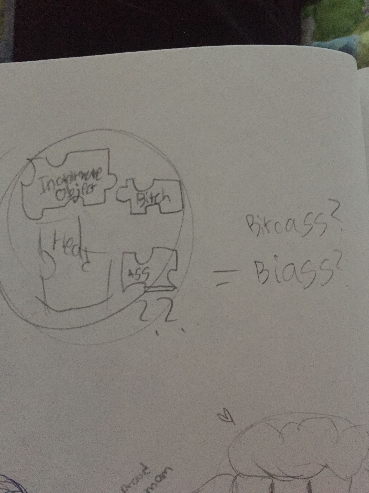 then we tried to understand the (object here) bitch head ass insult because someone yelled bean head ass in our science class and we thought it was funny