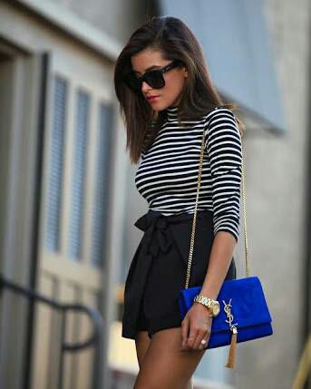 As I ran the brush along my hair strands, I stared at my reflection in the mirror. A pair of loose black shorts with a white and black striped shirt assorted with a royal blue Yves Saint Laurent bag seemed perfect for the day.