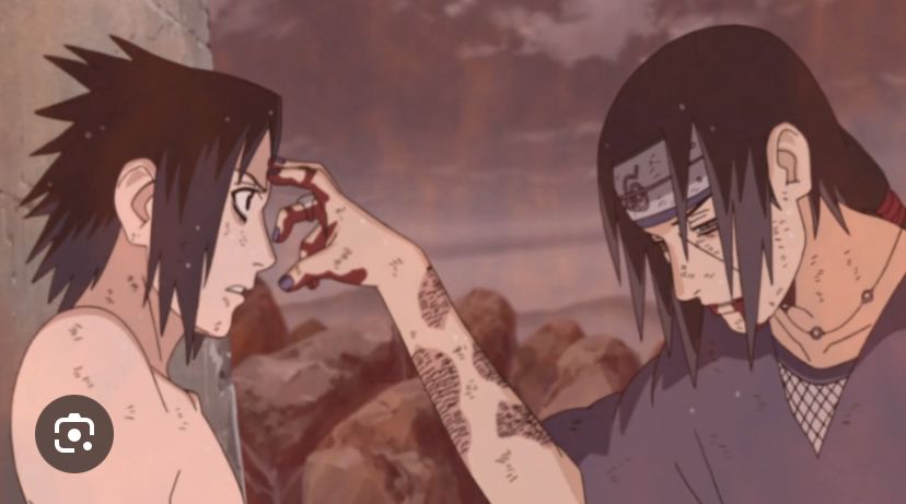 Itachi lẩm nhẩm gì đó không ai nghe rõ càng đừng nói tới Sasuke đang kinh hoảng , bàn tay đã chạm tới gương mặt nhưng mục đích không hề là đôi mắt , Itachi đầy máu và thương tích đột nhiên mỉm cười , dưới sự ngỡ ngàng kinh ngạc lại như lúc còn bé dùng tay đâm vào trán đệ đệ