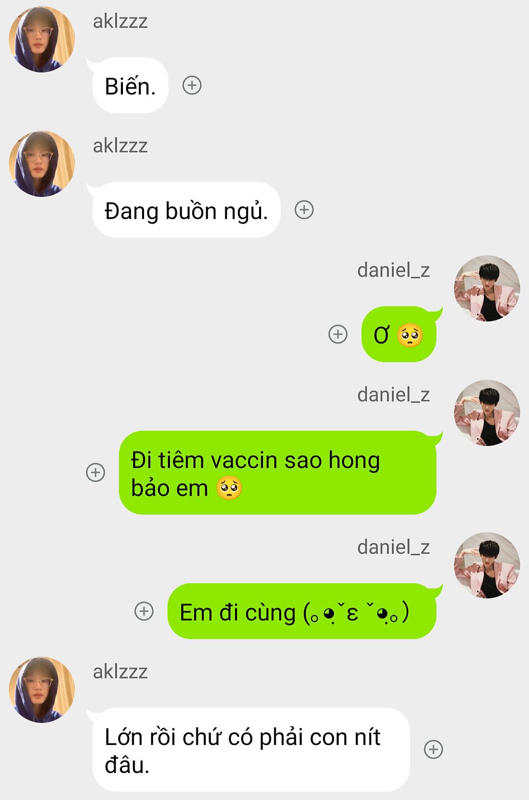 mình cũng vừa mới tiêm về đây, rồi chợt bùng lên cái idea này =)) đêm qua sốt giật đùng đùng thế mà lại nghĩ ra thêm một đoạn nữa, nhưng mà sẽ là truyện chữ, viết tiếp phần này khi Vũ tới nhà AK nhé. Dù đây là textfic nhưng mình thích z á, buộc chịu 🚬🚬🚬