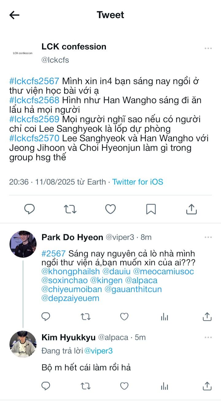 "Trời mưa to thế này em về không được đâu,chi bằng tối nay ở lại đây với anh nhỉ"-Lee Sanghyeok vừa nói vừa ghé sát mặt Han Wangho từ đằng sau