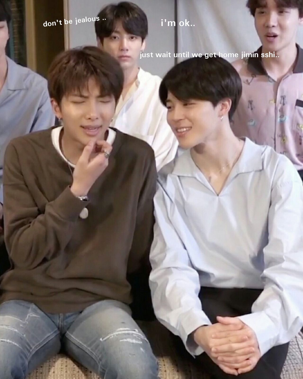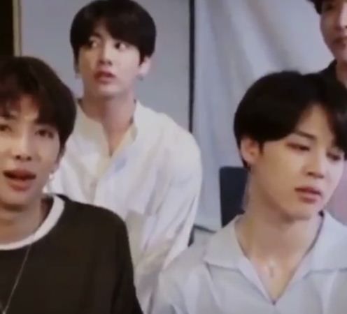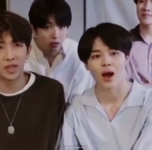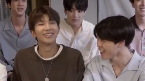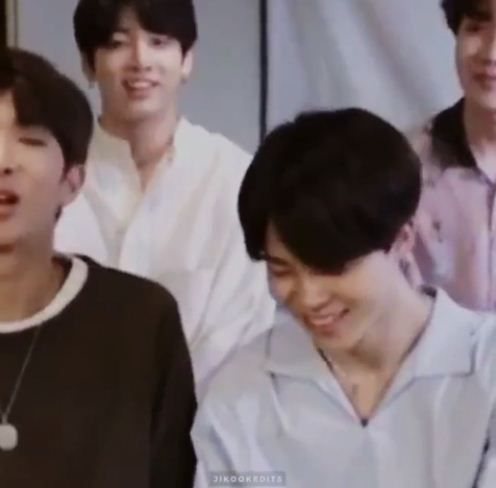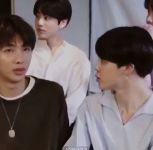 Khi bạn nhỏ thấy JM cười đùa với Namjoon một cái gì đó vui vui =))))))))