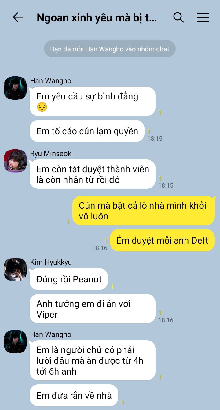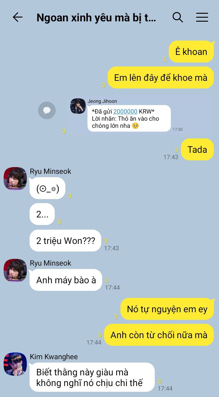 Wooje không thích cô gái mình đang nhắn cùng, cô ta quá nhàm chán và nhiều chuyện. Cậu còn định chờ đi chơi rồi ăn xong bữa mai thì block luôn cho đỡ rách việc.