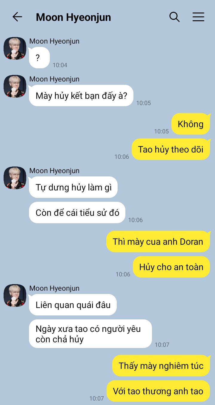 Ryu Minseok đã hủy theo dõi Moon Hyeonjun