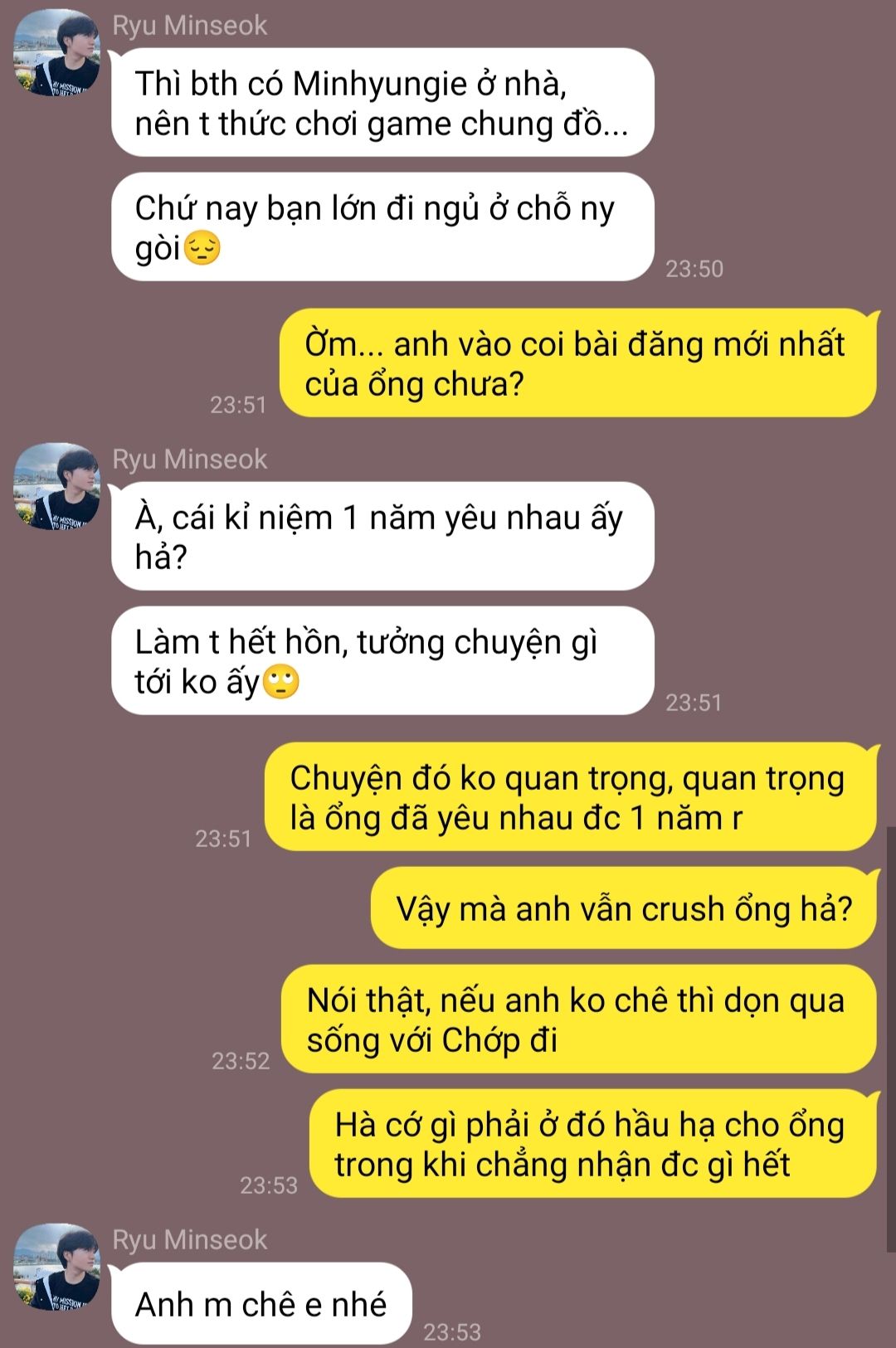 Vốn dĩ tui muốn cắt ảnh lại cho gọn hơn, nhưng vì đợt đang viết mấy chương đầu thì máy tui hư, phải reset nên tui bị mất hết ảnh với mấy đoạn chat rồi.