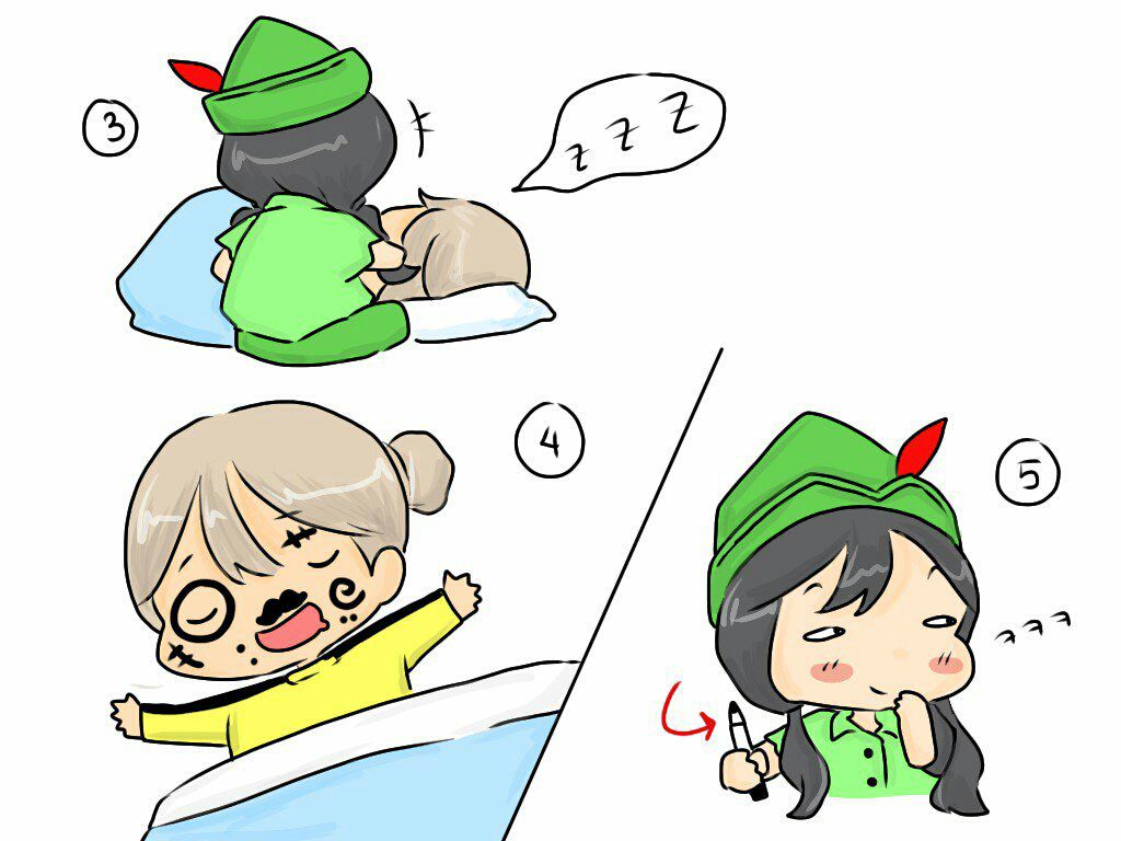 Somi chờ hoài không thấy Sejeong dậy, định bụng không thèm gọi nữa, tí đi trễ ăn bắp cải cho biết, hứ!